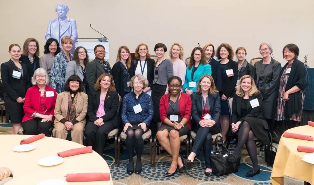 Then as now – nearly 10 years, hundreds of contributors, and thousands of posts later – IntLawGrrls mentors new voices and fosters community among contributors at all stages of their careers. Our periodic group photos are evidence of that. (At top is our photo from last spring’s ASIL annual meeting, when IntLawGrrl Betsy Andersen, 2d from right in top row, earned the Prominent Woman in International Law Award.)