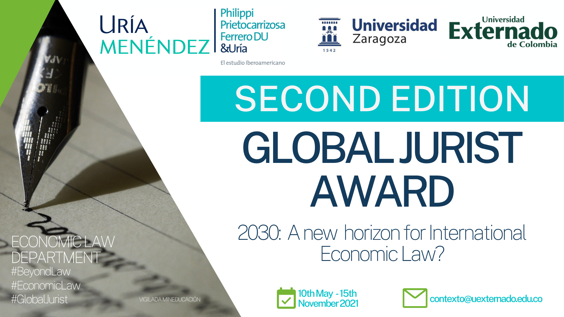 The Law Schools of the Universidad Externado (Columbia), the Universidad de Zaragoza (Spain), and the Latin American Network of International Economic Law are presenting the Second Edition of the Global Jurist Award. Taking the year 2030 as the goal line, the Second Edition of the Global Jurist Award will recognize the author(s) who make(s) accurate assessments about present International Economic Law and who also offer(s) lucid proposals on how International Economic Law’s changes during the current decade should be implemented. The call for essays closes the night of November 15, 2021 and the winner(s) will be announced on December 15, 2021.