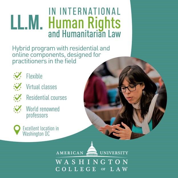 ► American University Washington College of Law is accepting applications for its Master’s in International Human Rights and Humanitarian Law.